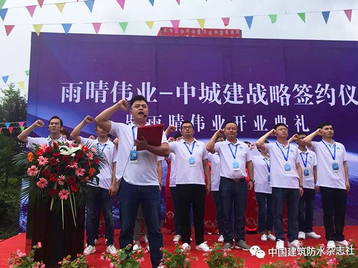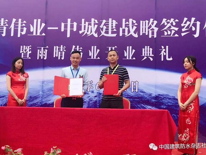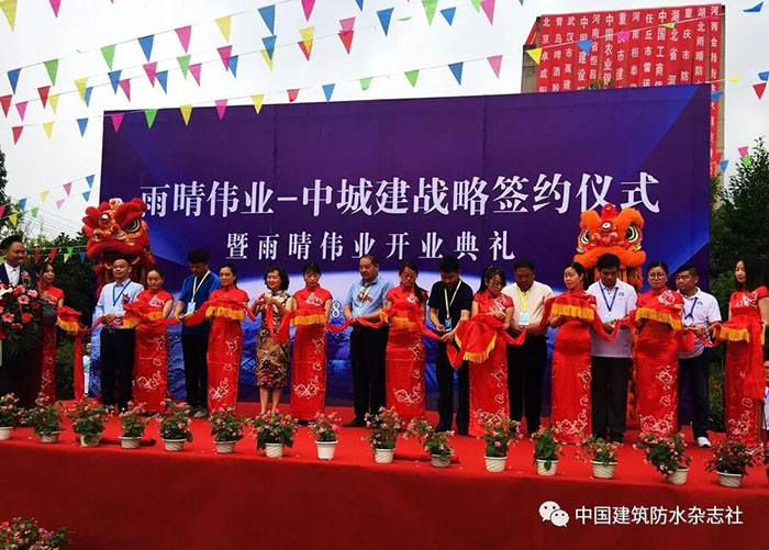 2018年6月21日, 湖北雨晴偉業(yè)防水技術(shù)發(fā)展有限公司開(kāi)業(yè)慶典暨中城建戰(zhàn)略簽約儀式活動(dòng)現(xiàn)場(chǎng)賓客云集,人頭攢動(dòng),場(chǎng)面火爆、掌聲如雷。這標(biāo)志著雨晴偉業(yè)從今天起正式的面向大眾,面向市場(chǎng),也意味著雨晴偉業(yè)工廠的正式運(yùn)營(yíng)。